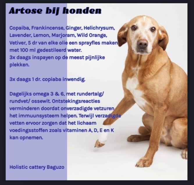 Essentiële oliën van doTERRA kunnen, mits goed gebruikt, ondersteuning bieden bij dieren met artrose. Ze werken ontspannend, ontstekingsremmend of pijn verlichtend en kunnen zo bijdragen aan meer comfort.
